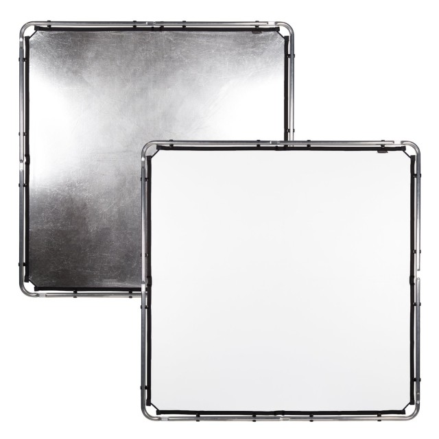 El Lastolite Skylite Rapid Fabric Midi de 1,5 x 1,5 m en color blanco plateado es un panel reflectante de doble cara diseñado para los bastidores Skylite Rapid. Ofrece tanto reflejos suaves y neutros como reflejos brillantes y de alto contraste, lo que permite un control versátil de la luz durante la sesión fotográfica.