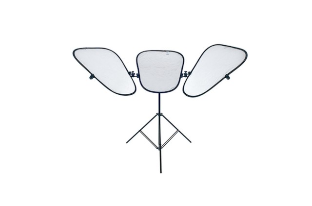 Gran reflector TriGrip para tomas que requieren iluminar, por ejemplo, todo el cuerpo