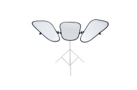 Cada panel reflector cuenta con una superficie Sunfire (una mezcla de oro y plata) en una cara y una superficie plateada en la otra, lo que ofrece flexibilidad entre tonos cálidos y suaves y reflejos más brillantes con mayor contraste. El sistema de bisagras ajustables permite colocar cada panel de forma independiente, lo que facilita el ajuste preciso de los ángulos de iluminación para diferentes sujetos y composiciones. Todo el sistema está diseñado pensando en la portabilidad: se puede plegar de forma compacta y cabe en una bolsa de transporte, lo que lo hace adecuado tanto para su uso en estudio como en exteriores. Ligero pero robusto, el Triflector MKII es una herramienta imprescindible para lograr una iluminación de retratos de calidad profesional.