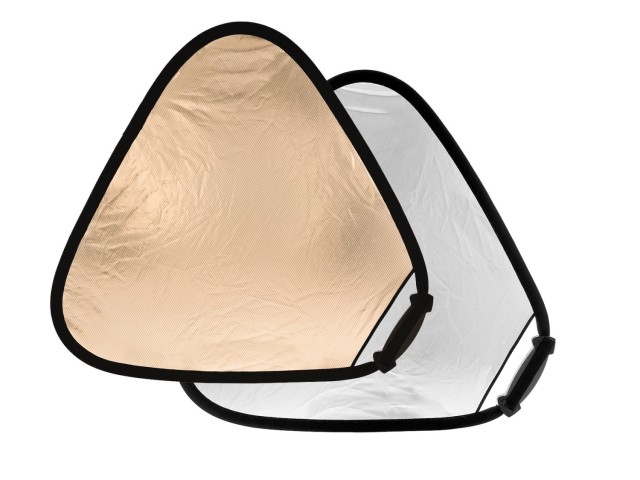 El reflector Lastolite TriGrip de 75 cm Sunfire/Silver es un reflector triangular plegable de mano diseñado para crear una luz reflejada cálida o contrastada, ideal tanto para retratos como para fotografía general.