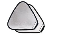 Gran reflector TriGrip para tomas que requieren iluminar, por ejemplo, todo el cuerpo mediante luz reflejada. En lugar de la forma circular de los difusores estándar, el TriGrip utiliza un diseño triangular que proporciona una estructura mucho más resistente y estable. Otra de sus ventajas es el mango ergonómico con correa de sujeción.