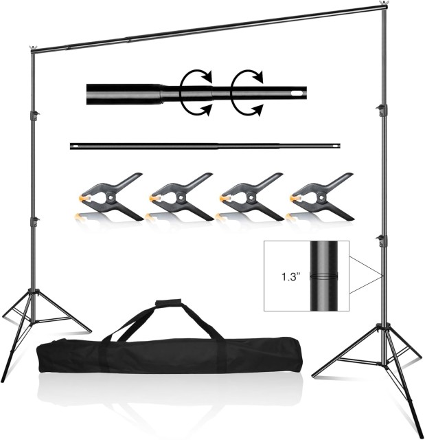 El soporte ajustable para fondos Latour es la solución perfecta para fotógrafos y camarógrafos. Este resistente soporte de aleación de aluminio, con una altura ajustable de hasta 2,6 m y una anchura de hasta 3 m, garantiza la estabilidad de todos tus fondos. Es ideal tanto para uso profesional como ocasional, es fácil de montar y transportar, por lo que es un ayudante indispensable para estudios, eventos o rodajes fuera de casa.