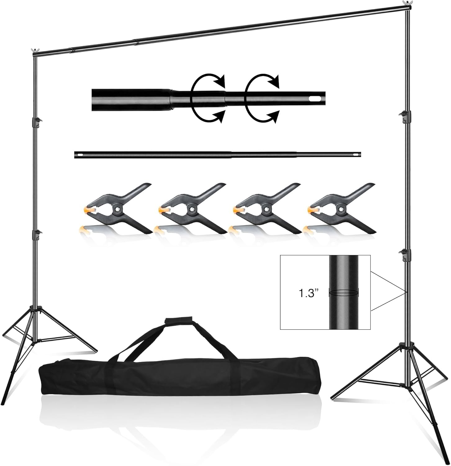 El soporte ajustable Latour Backdrop ofrece una configuración fiable y versátil para todas tus necesidades fotográficas y de videografía. Este soporte está fabricado en una robusta aleación de aluminio, es ligero y, al mismo tiempo, muy resistente. Ofrece una altura ajustable en un rango de 70 cm a 2,6 m y una anchura de hasta 3 m, por lo que es ideal para diversos fondos y diferentes requisitos de captura. El soporte está equipado con un sistema de fijación rápida para un montaje y desmontaje sin complicaciones, y garantiza la estabilidad durante su uso. Su diseño compacto y portátil, junto con la bolsa incluida, facilita su transporte tanto en el estudio como en exteriores. Ya sea para retratos profesionales, retransmisiones en directo o eventos especiales, el soporte Latour Backdrop es una solución eficaz y práctica.