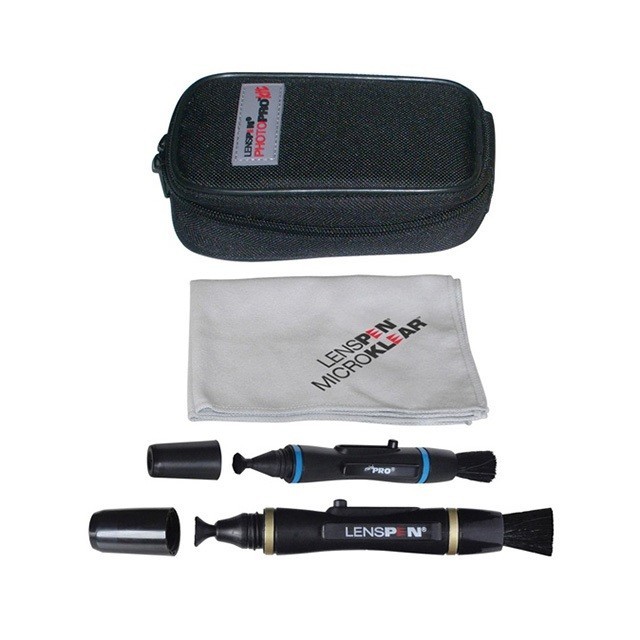 El kit LENSPEN PhotoPro es un kit portátil para la limpieza de lentes, diseñado para eliminar el polvo, las huellas dactilares y las manchas de las cámaras, los objetivos y los dispositivos ópticos. Incluye un lápiz LensPen, un lápiz MiniPro, un paño de microfibra y un estuche de nailon con una presilla para el cinturón, ideal para limpiar sobre la marcha.