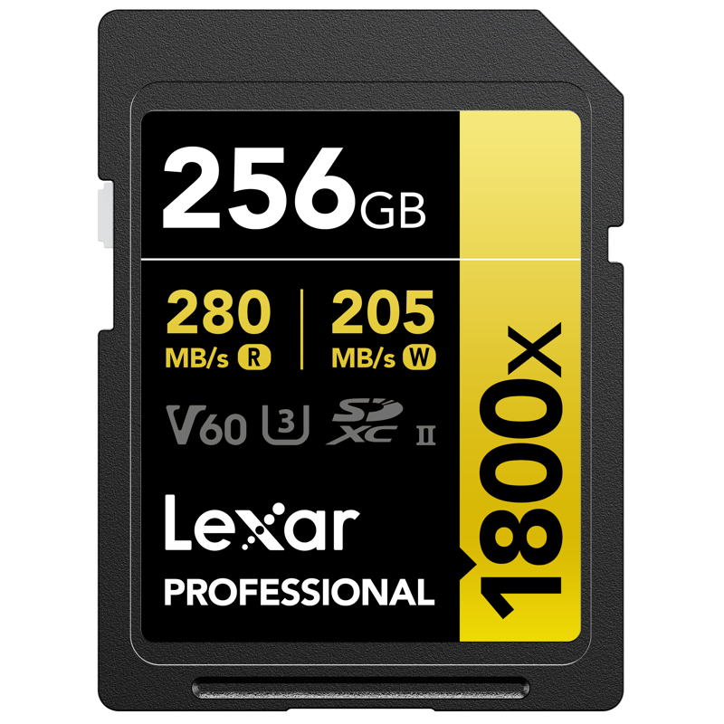 Rendimiento de nivel profesional que satisfará perfectamente tus necesidades. La tarjeta Lexar® Professional 1800x SDXC™ UHS-II GOLD, diseñada para tus cámaras réflex digitales o sin espejo, te permitirá capturar y transferir rápidamente fotografías de alta calidad y espectaculares vídeos Full HD y 4K a una velocidad de lectura de hasta 280 MB/s1. Gracias a la última tecnología UHS-II y a la clasificación Video Speed Class 60 (V60), esta tarjeta acelerará drásticamente tu trabajo, de principio a fin.