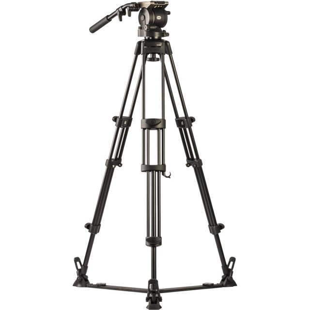 El kit del trípode HS-150 incluye el cabezal H15, las patas RT30B, el estabilizador inferior SP-2B y la funda RC-30. Base de aluminio con una altura de 56 a 166 cm. Peso: 6,2 kg; capacidad de carga máxima del cabezal: 3 kg.