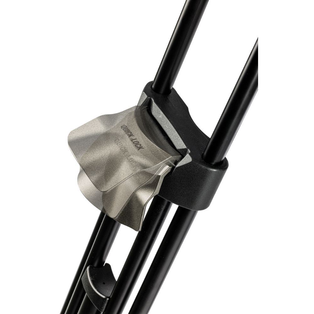 El mecanismo de bloqueo del trípode QL40B permite a los usuarios ajustar cómodamente la altura mediante los bloqueos de las patas, situados en la parte superior del trípode. La forma del cierre rápido Quick Lock tipo flip tiene un diseño ergonómico, lo que facilita su sujeción con los dedos tanto desde abajo como desde los lados. Esto permite un montaje rápido y sencillo.