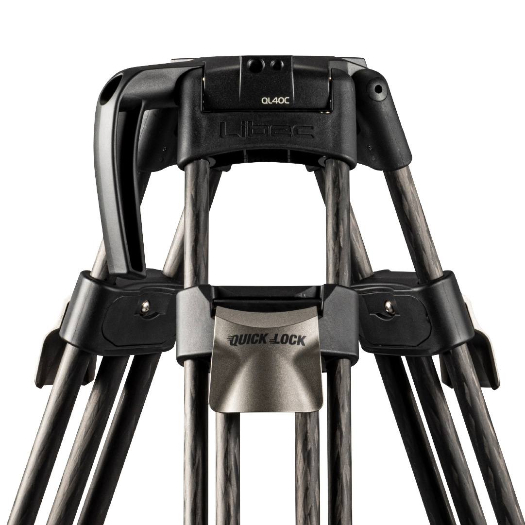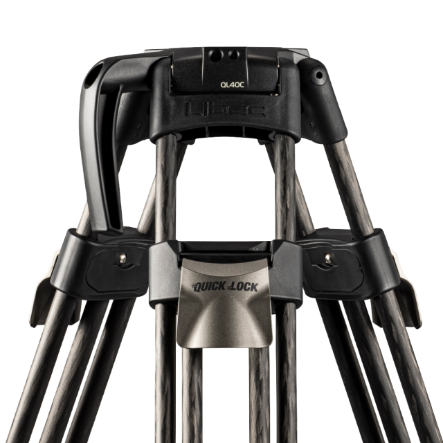 El trípodeQL40Cse basaen el popular trípode Quick-Lock QL40B y está fabricadoen fibra de carbono. El trípode cuenta conun único mecanismo de bloqueo patentadoenla parte superior, diseñado específicamente para facilitar el ajuste de la altura. El sistema Flip-lock, también con un diseño patentado, permitebloquear y desbloquear rápidamente el trípode, lo que reduce considerablemente el tiempo necesario para montarlo. La ausencia de un bloqueo inferior elimina la necesidad de agacharse, lo que reduce la carga para el usuario.