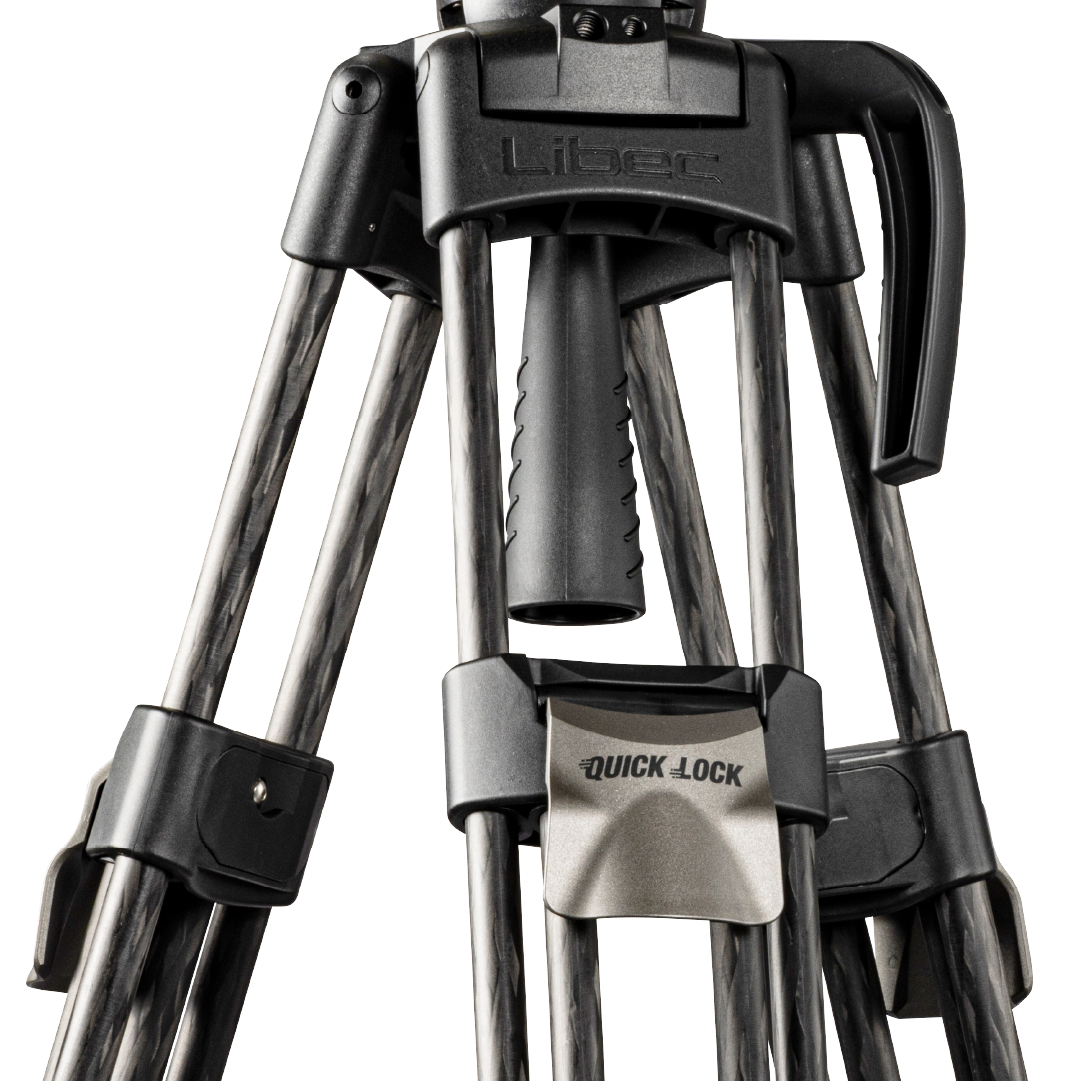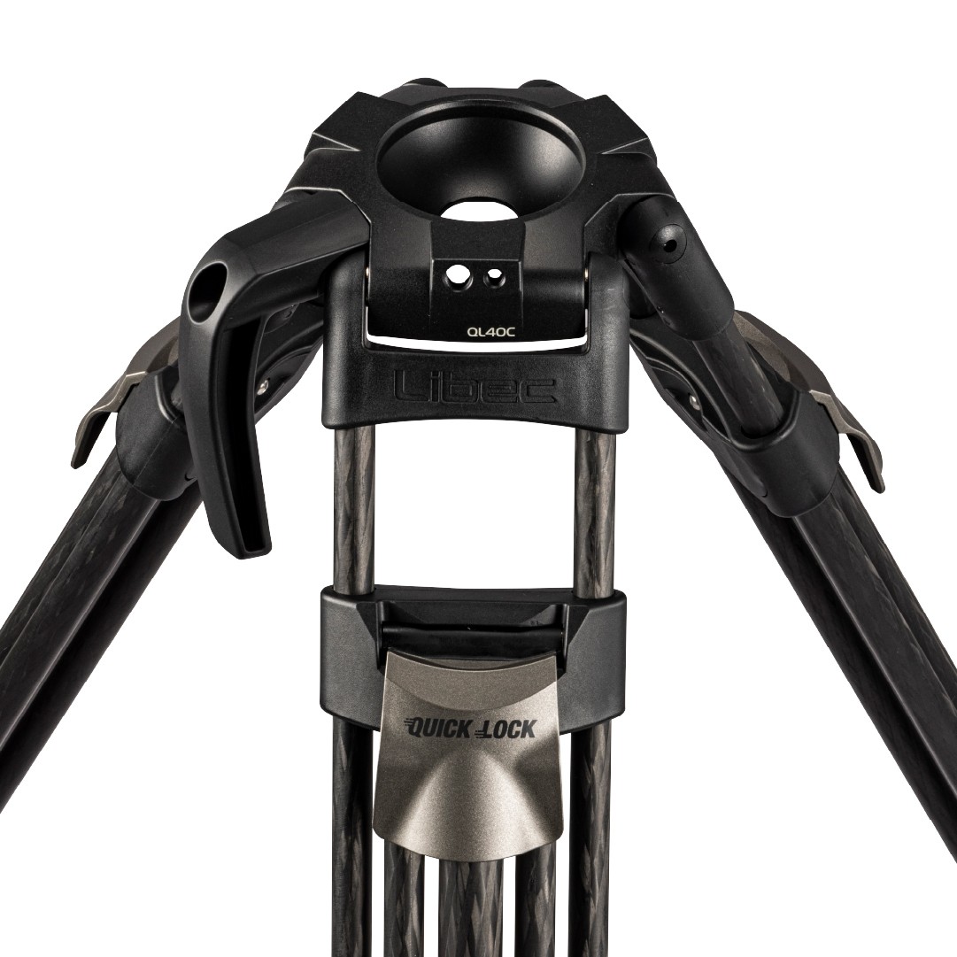 El trípodeQL40Cse basaen el popular trípode Quick-Lock QL40B y está fabricadoen fibra de carbono. El trípode cuenta conun único mecanismo de bloqueo patentadoenla parte superior, diseñado específicamente para facilitar el ajuste de la altura. El sistema Flip-lock, también con un diseño patentado, permitebloquear y desbloquear rápidamente el trípode, lo que reduce considerablemente el tiempo necesario para montarlo. La ausencia de un bloqueo inferior elimina la necesidad de agacharse, lo que reduce la carga para el usuario.