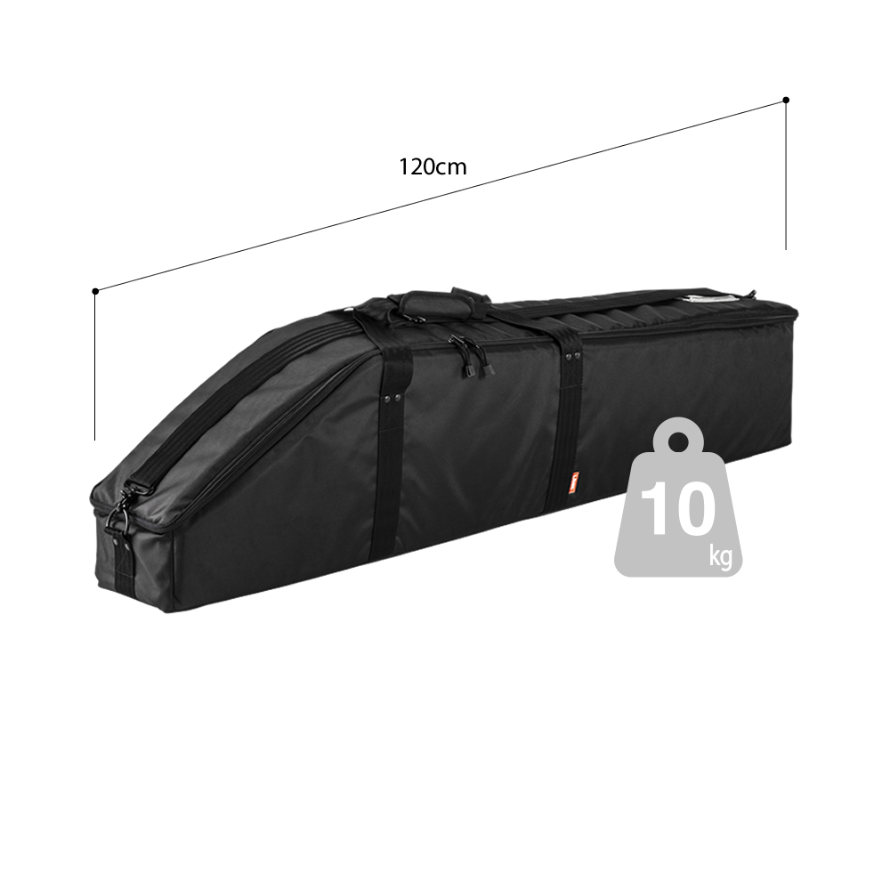 Gran portabilidad: una vez plegado y guardado en el maletín incluido, el brazo del soporte mide solo unos 120 cm de largo y cabe fácilmente en el maletero de un coche. Aunque el brazo del soporte pesa solo 10 kg, la correa para el hombro del maletín proporciona un apoyo adicional y reduce la carga durante el transporte.