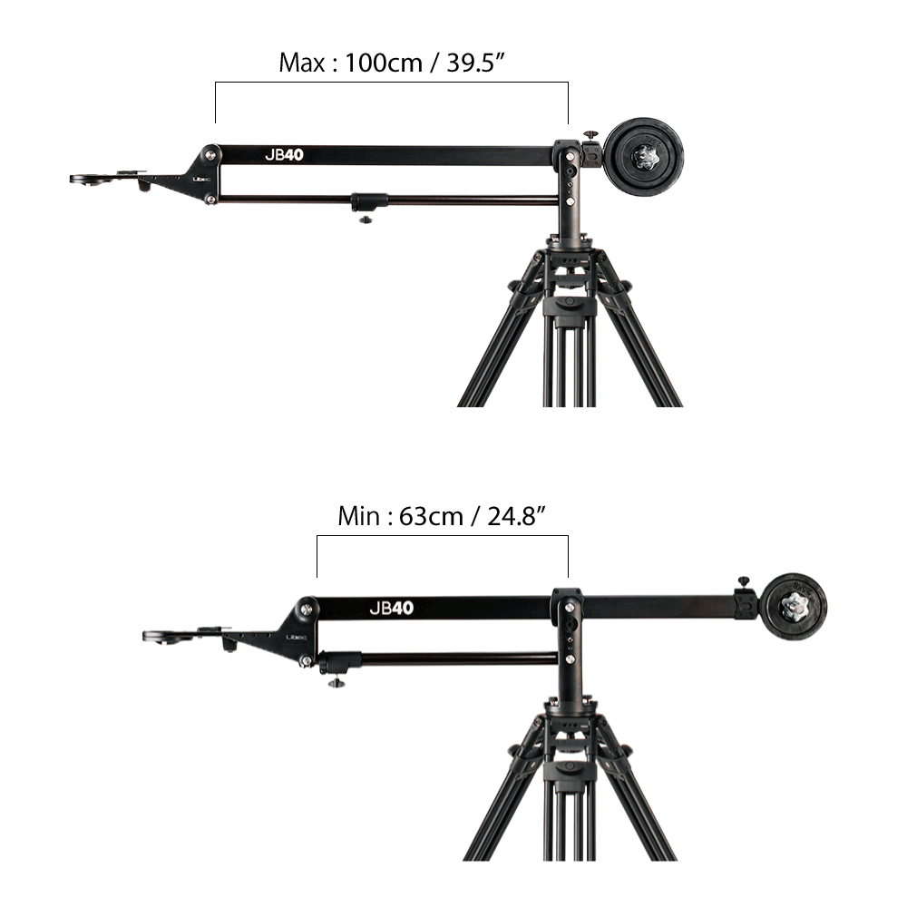 Rigidez: el JB40 soporta una carga de hasta 20 kg y está diseñado para minimizar el balanceo o la flexión del brazo, lo que permite obtener tomas fluidas y estables con la cámara.