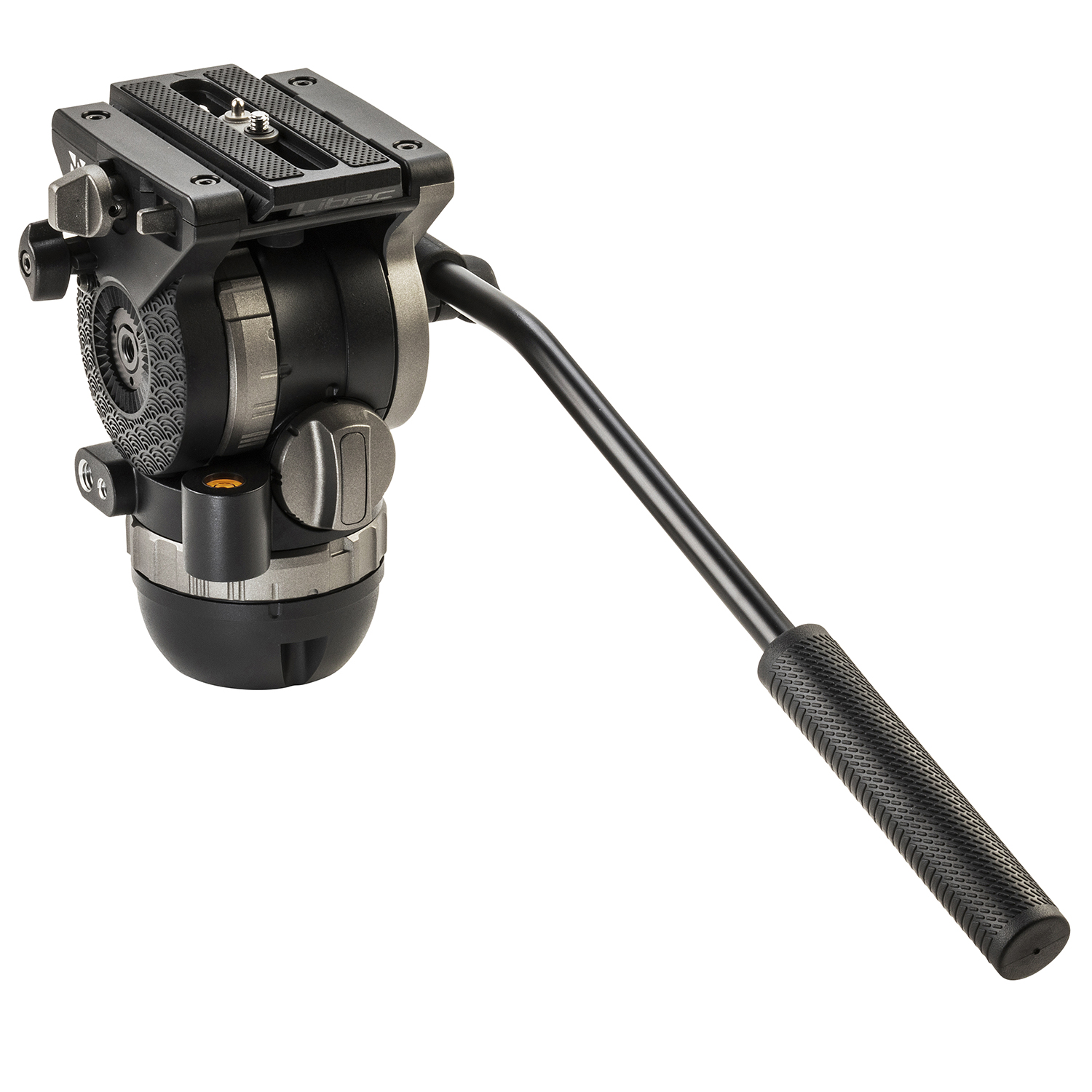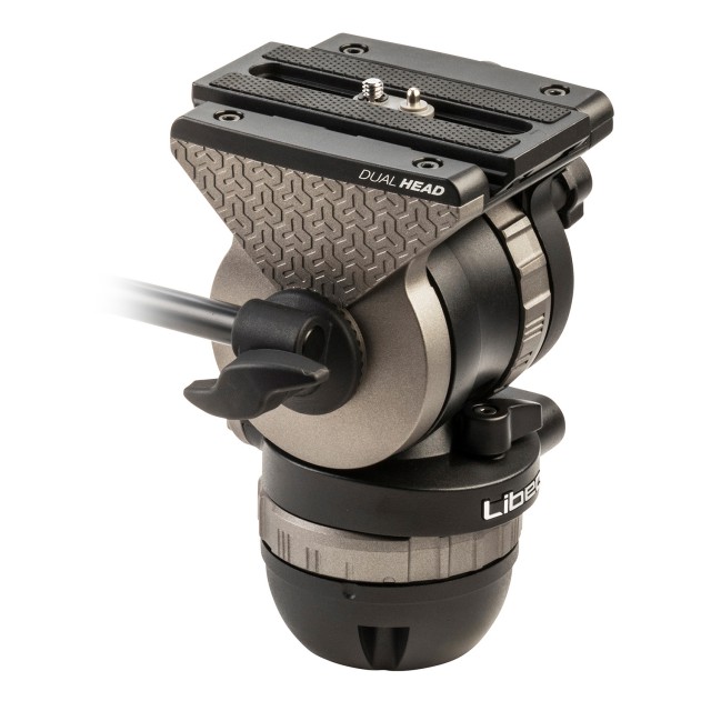 Cabezal de vídeo (para montaje esférico y plano de 75 mm) con palanca de panorámica y capacidad de carga de 10 kg.