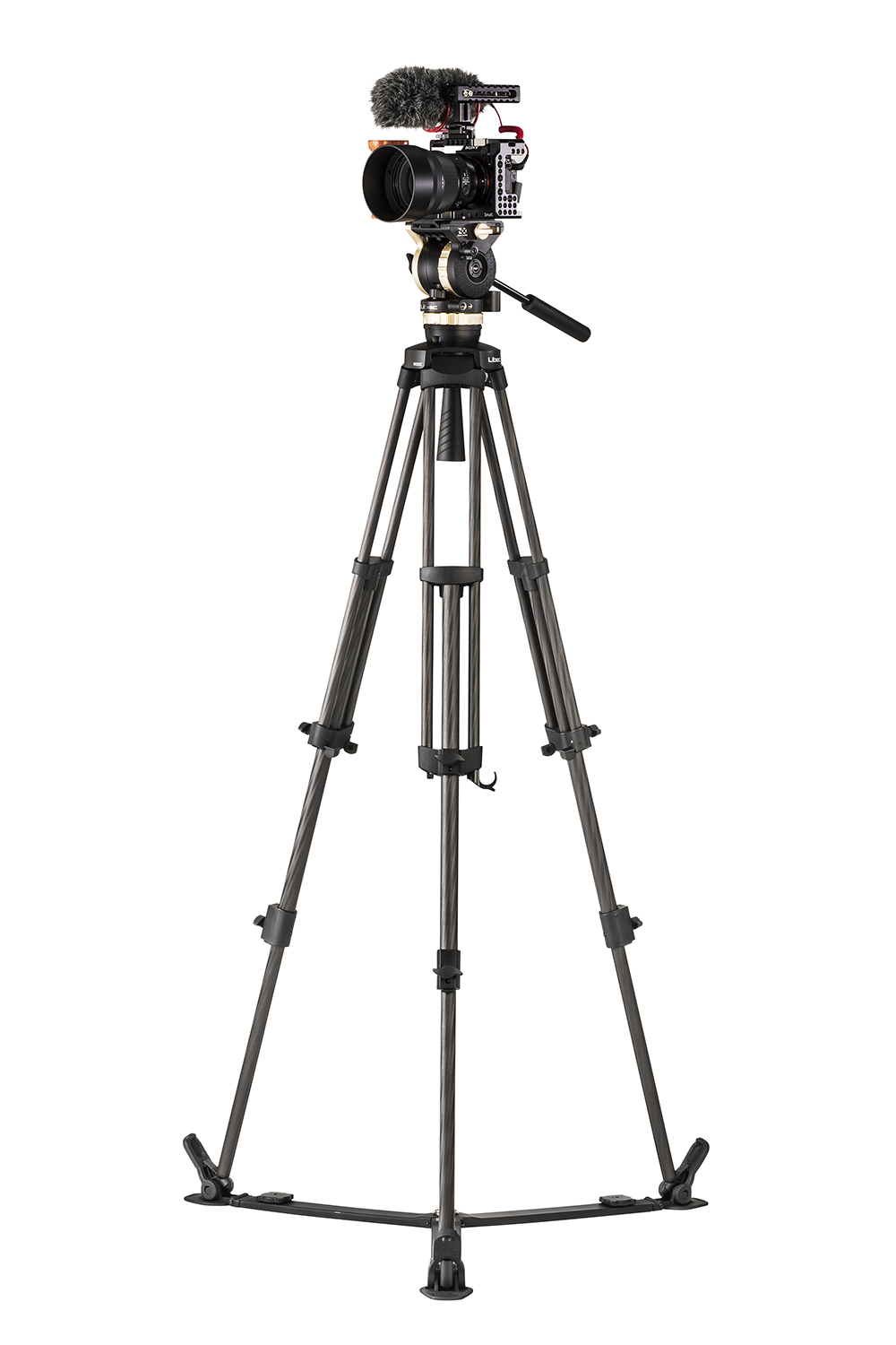 Juego de trípode de carbono con barra de base para cámaras DSLR/DSLM y cámaras pequeñas. El juego incluye los componentes Libec NH10 / RT20C / SP-1B / RC-20. La rótula NH10 tiene una capacidad de carga de 4 kg. Peso: 4,1 kg; altura: 53 – 168 cm.