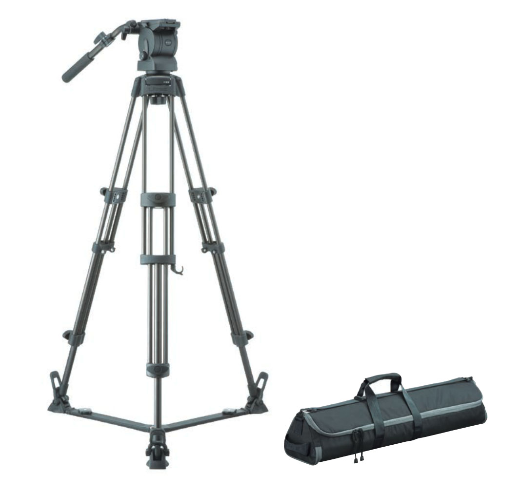 Juego compuesto por un trípode de dos secciones RT30B, patas de apoyo SP-2B, cabezales fluidos compactos RH35D y una bolsa de transporte RC-30. Peso: 6,2 kg; capacidad de carga: 9 kg; rango de altura: 56 – 166 cm.
