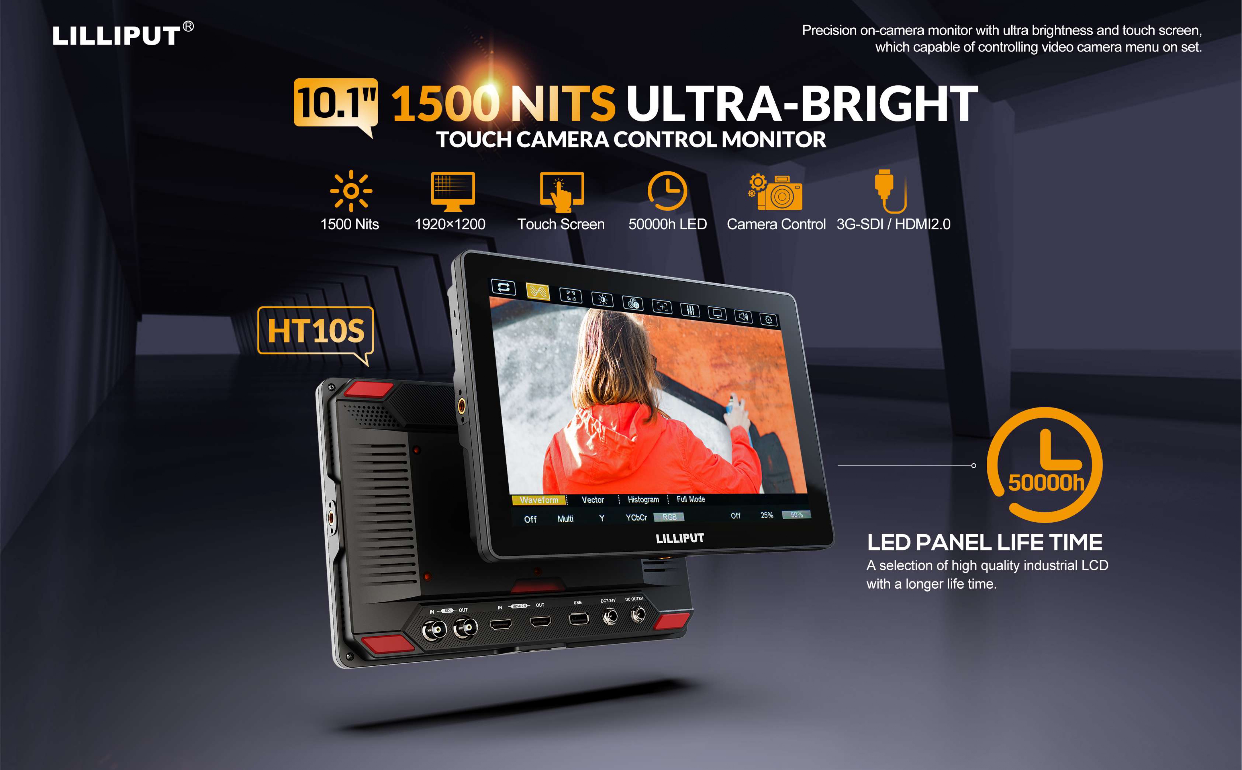 HT10S: monitor táctil de 10,1" con un brillo excepcionalmente alto de 1500 nits y control directo desde la cámara