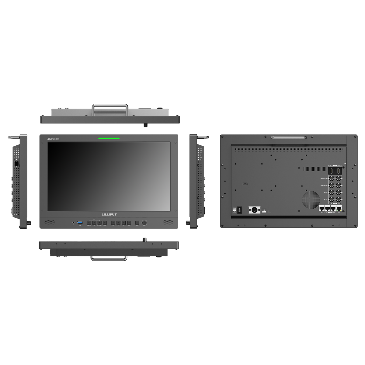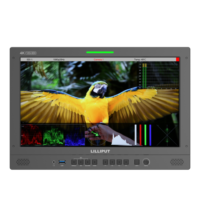 El monitor de estudio para broadcast Lilliput de 15,6" con 12G-SDI/HDMI es un monitor de 15,6" con resolución nativa UHD 4K y placa de batería V-mount, ideal tanto para el estudio como para el trabajo sobre el terreno. El monitor admite resoluciones de hasta DCI 4K (4096 x 2160) y UHD 4K (3840 x 2160) y está equipado con una entrada HDMI 2.0 y cuatro entradas SDI (dos de 12G y dos de 3G), lo que permite entradas SDI de uno, dos y cuatro canales. El monitor también cuenta con salidas pasantes HDMI y SDI para la transmisión de señal en cadena. Para trabajar con colores críticos, el monitor es compatible con la versión PRO/LTE del sistema LightSpace CMS (no incluido).