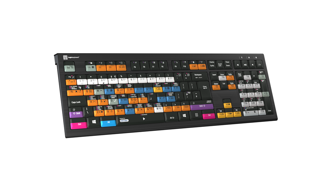 El teclado especial Logickeyboard para Adobe After Effects también incluye todas las letras, números y símbolos habituales que se encuentran en un teclado convencional, por lo que puede utilizarse fácilmente como sustituto de este. El teclado se conecta fácilmente y no requiere la instalación de ningún software.