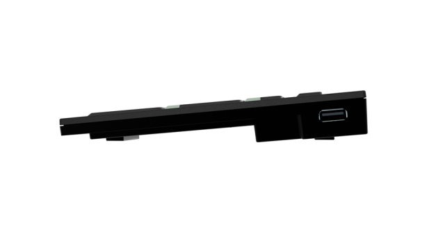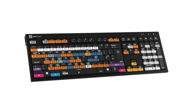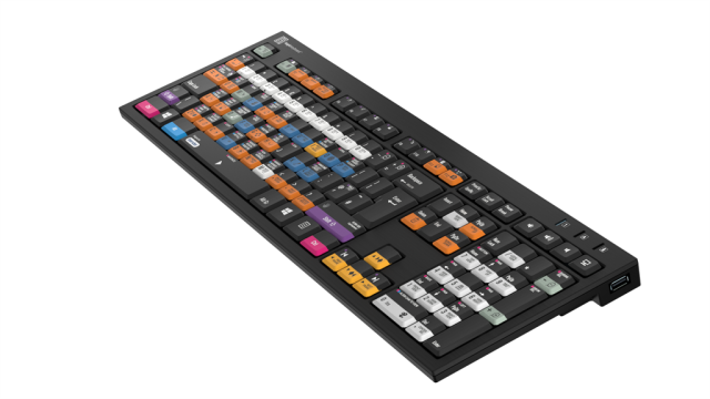 Para tu comodidad, el teclado Logickeyboard está equipado con dos concentradores USB de alta velocidad integrados para conectar fácilmente dispositivos periféricos, como el jog/shuttle o la lámpara del teclado LogicLight, si trabajas en un entorno con poca luz.