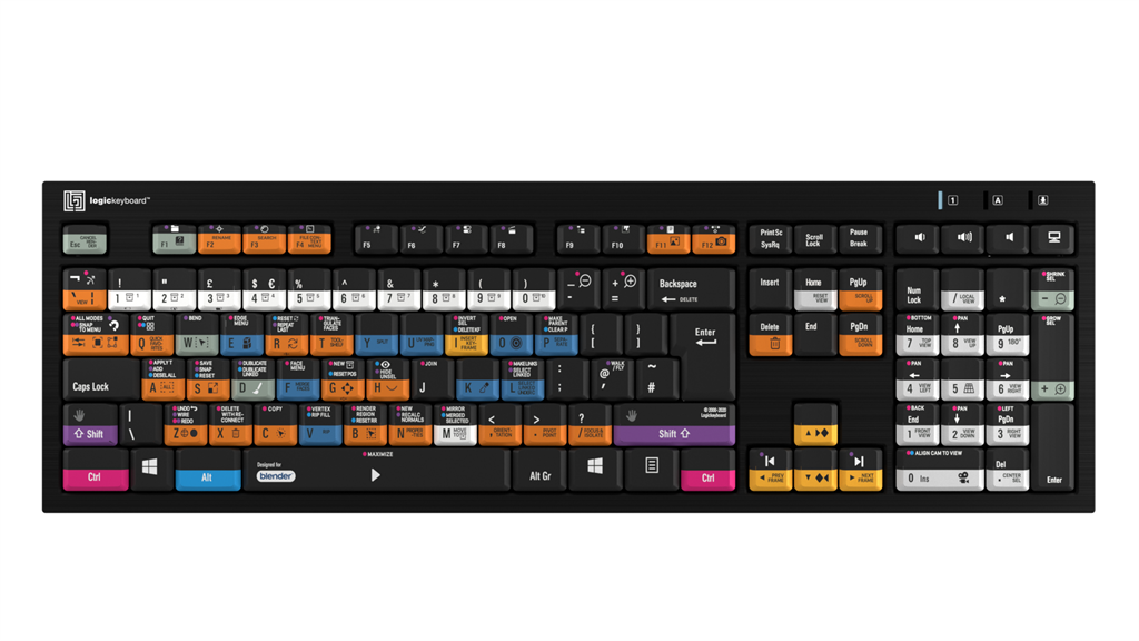El teclado delgado Logickeyboard, diseñado para Blender. Fabricado para PC con Windows. Este teclado Logickeyboard es tu mejor opción para editar en Blender. Gracias a los atajos de teclado indicados en las teclas y a su código de colores, te convertirás en un experto en el manejo de Blender en un abrir y cerrar de ojos. El teclado Logickeyboard es ideal para estudios de modelado 3D, entornos gráficos profesionales y todos aquellos que trabajan intensamente con Blender.