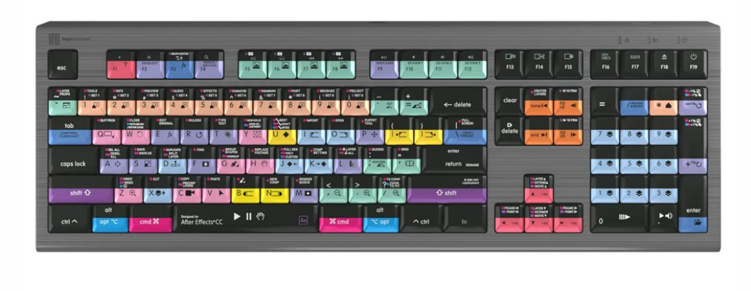 El teclado Logickeyboard Adobe After Effects CC Astra 2 para Mac está diseñado para profesionales que necesitan un acceso rápido y eficaz a los atajos de teclado de After Effects. Cada tecla está diferenciada por colores y claramente identificada con su función, lo que permite a los editores, creadores de gráficos en movimiento y diseñadores 3D manejar Adobe After Effects con precisión y rapidez.