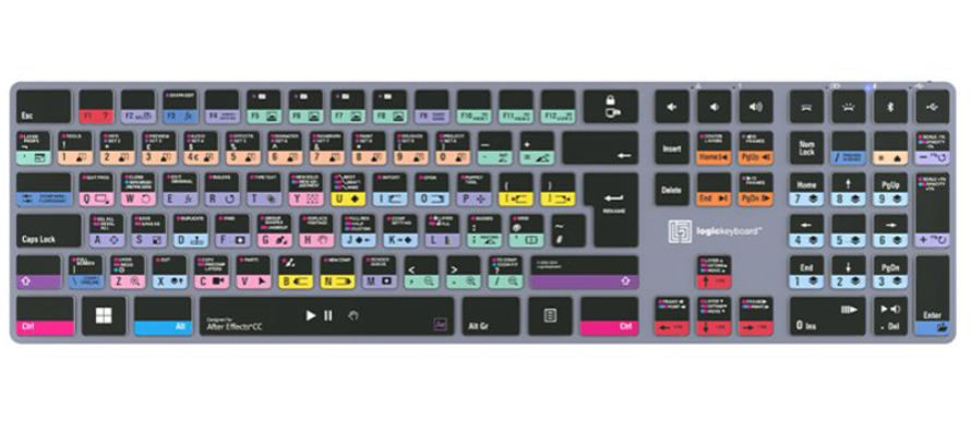 El teclado Logickeyboard Adobe Filmmaker Pr+Ae ASTRA 2 PC es un teclado profesional