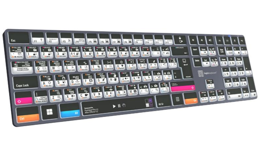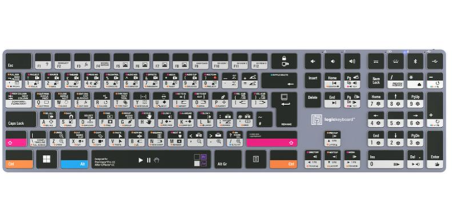 El teclado Logickeyboard Adobe Filmmaker Pr+Ae ASTRA 2 PC es un teclado profesional