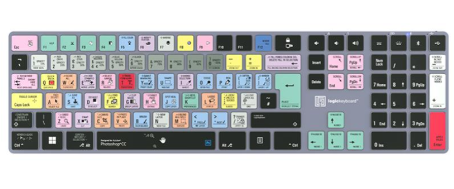 El teclado Logickeyboard Adobe Photographer PS/LR Astra 2 para PC es un potente teclado