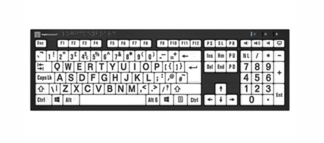 El teclado auxiliar Logickeyboard Braille/Large Black on White para PC es un teclado diseñado para facilitar el acceso, destinado a usuarios con baja visión o discapacidad visual. Gracias a sus teclas con letras grandes y caracteres Braille en relieve, ofrece una experiencia de escritura inclusiva, resistente y fácil de usar, con función plug-and-play para el sistema Windows.