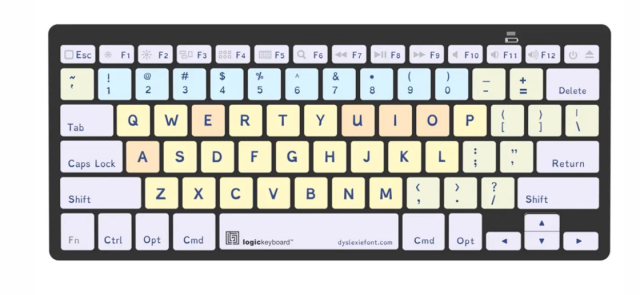 El teclado inalámbrico Logickeyboard Dyslexia Bluetooth para PC (teclado británico)
