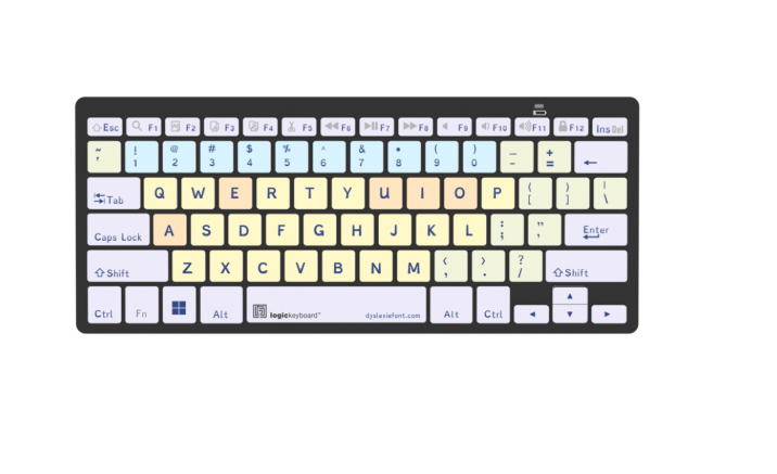 El teclado Logickeyboard Dyslexia Bluetooth para PC (teclado británico) es un teclado cuidadosamente diseñado cuyo objetivo es mejorar la precisión al escribir y la legibilidad para los usuarios con dislexia o dificultades de lectura. Las teclas cuentan con una tipografía especial para dislexia y están optimizadas para reducir la confusión entre letras y mejorar su reconocimiento, lo que facilita la escritura y aumenta su accesibilidad.