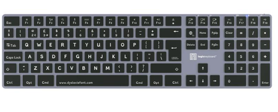 El teclado inalámbrico Logickeyboard Dyslexie Bluetooth Mac Assistive Keyboard es