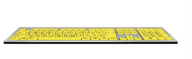 El teclado para PC Logickeyboard XLPrint Slim Line Black on Yellow combina accesibilidad, comodidad y funcionalidad, ofreciendo así una experiencia de escritura verdaderamente intuitiva. Gracias a sus teclas de alto contraste (negras sobre fondo amarillo), este teclado con caracteres grandes facilita el uso del ordenador, especialmente para personas con discapacidad visual o con baja visión. La distribución de 108 teclas (ANSI) o 109 teclas (ISO), combinada con teclas con mecanismo de tijera, garantiza una excelente respuesta táctil y una escritura precisa, mientras que las patas abatibles permiten ajustar el ángulo de escritura (8,5° con las patas desplegadas, 4,5° sin ellas).