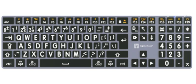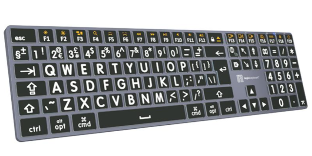 El teclado Logickeyboard XL Print ALBA Mac es un teclado plug-and-play de gran visibilidad