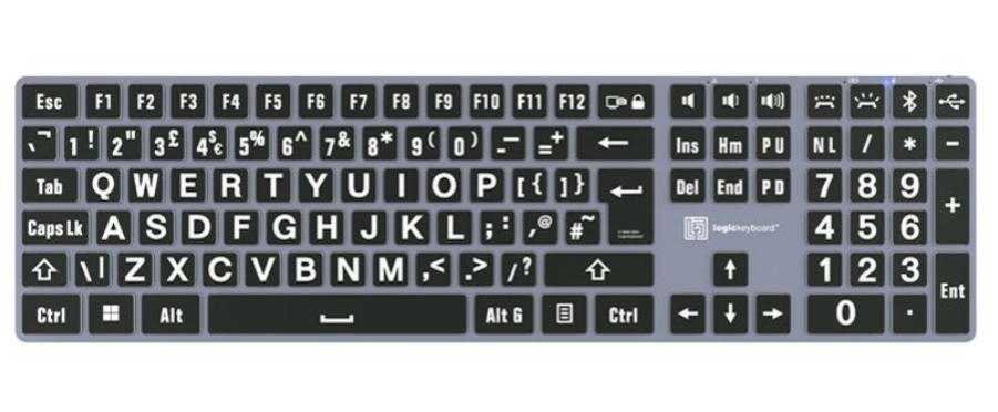 El teclado inalámbrico Logickeyboard Dyslexia Bluetooth para PC (teclado británico)