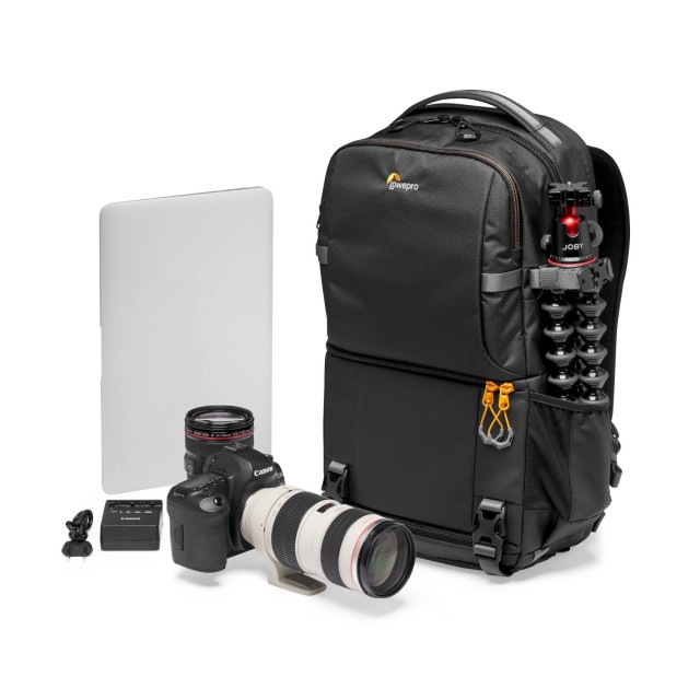 La mochila gris Lowepro Fastpack BP 250 AW III es una mochila versátil que cuenta con dos compartimentos principales, incluido un compartimento para cámara en la parte inferior, con capacidad para una cámara réflex digital o una cámara sin espejo con cuatro o cinco objetivos, incluido el objetivo montado.