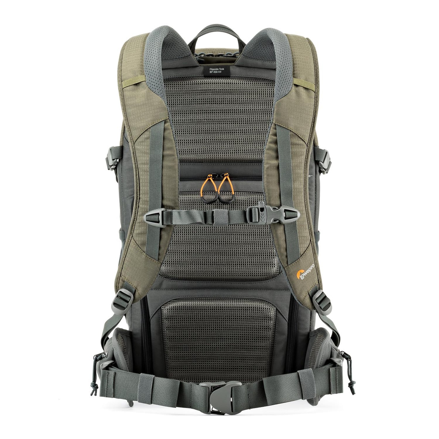 La Lowepro Flipside Trek BP 450 AW es una mochila fotográfica de alta gama para actividades al aire libre, diseñada para fotógrafos que necesitan combinar una cámara réflex digital profesional con su equipaje personal en expediciones de aventura. El compartimento fotográfico especial Flipside, situado en el lateral de la mochila, protege la cámara réflex digital con empuñadura y objetivo de 70–200 mm acoplado, además de 2–3 objetivos adicionales, un flash y accesorios. La tapa abatible y el compartimento dividido permiten un acceso rápido y, al mismo tiempo, garantizan la seguridad del equipo. La amplia zona abierta ofrece espacio para objetos personales, un trípode compacto, bastones de trekking o el equipo imprescindible para el campo, mientras que el bolsillo CradleFit™ alberga de forma segura una tableta de 10 pulgadas. El sistema de amortiguación ActivZone™, con correas acolchadas para los hombros y panel trasero, garantiza la comodidad durante todo el día, y gracias a varios puntos de fijación, se puede transportar equipo adicional en la mochila. Esta mochila está fabricada con materiales resistentes y cuenta con el acabado All Weather AW Cover™, por lo que está preparada para las duras condiciones al aire libre.