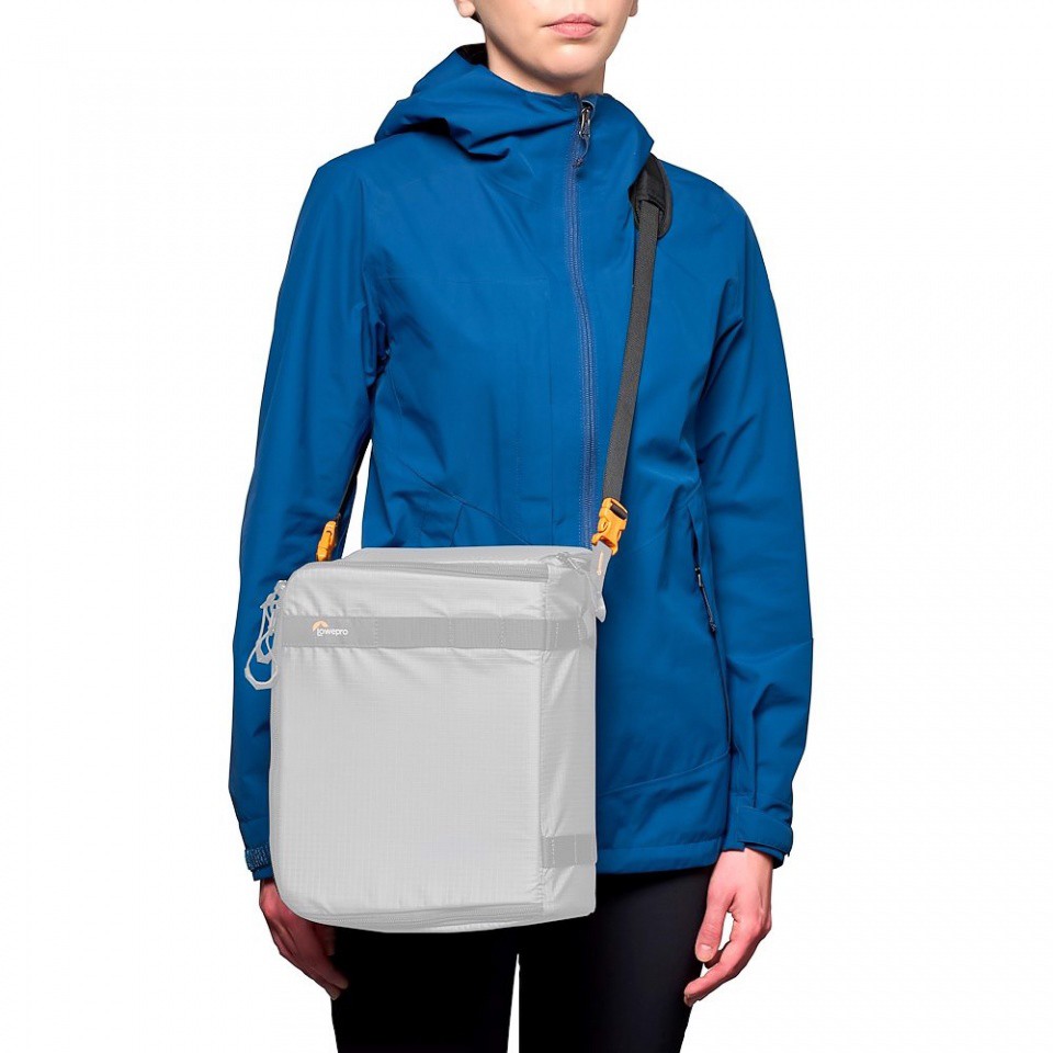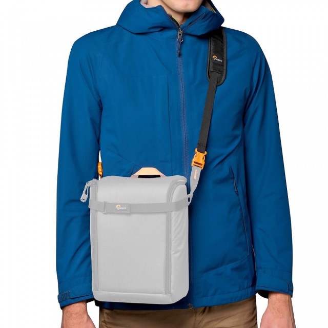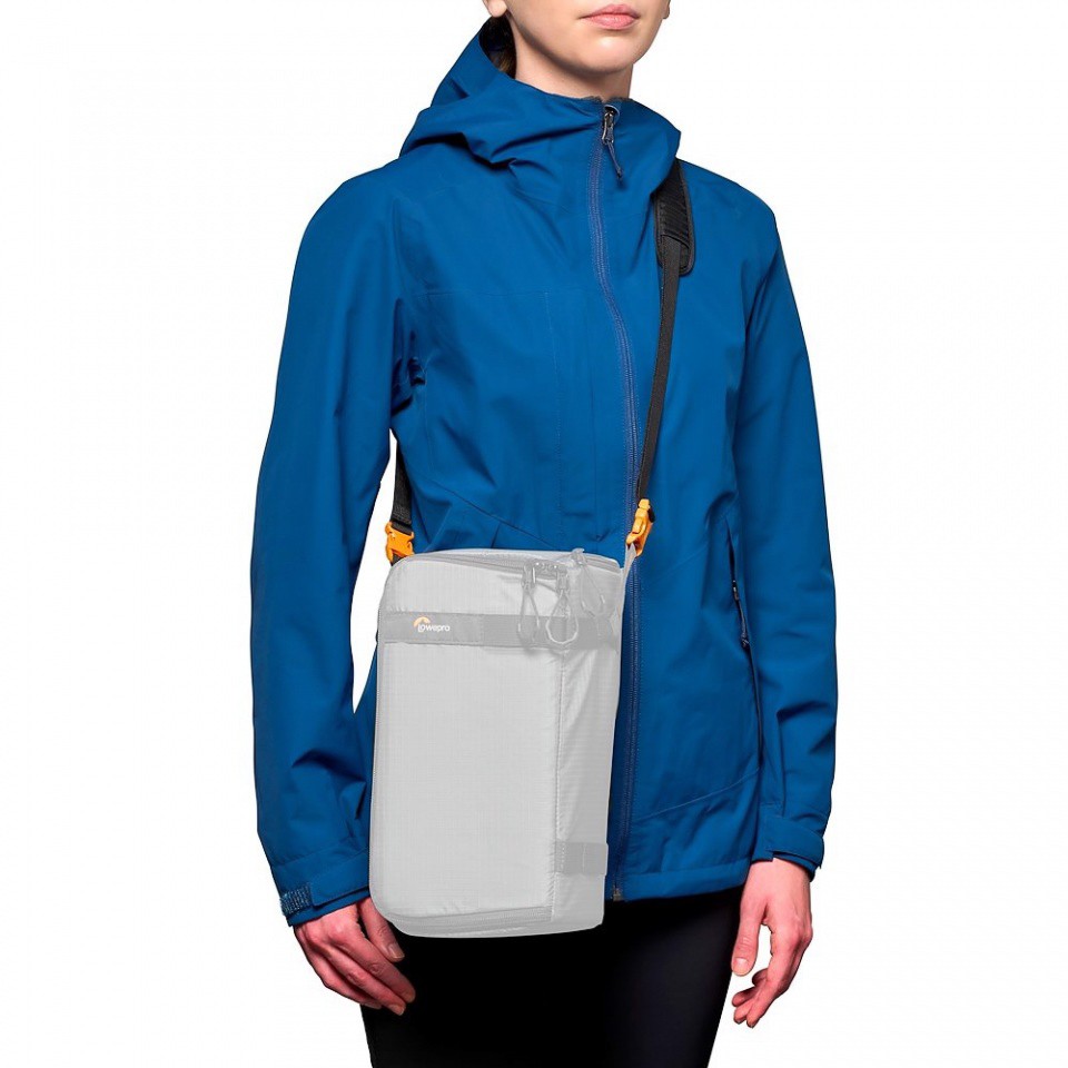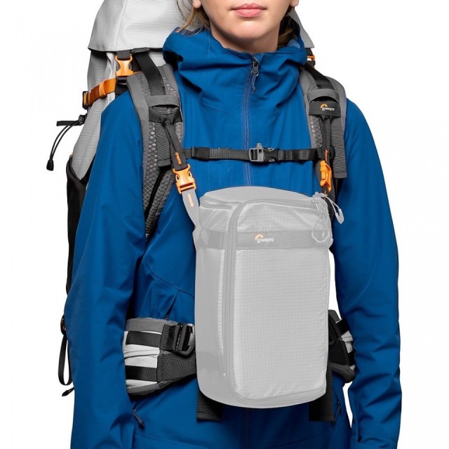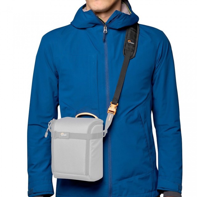 Un par de conectores de fijación permite acoplar la cámara o la caja GearUp directamente a la correa de hombro de la mochila Lowepro.