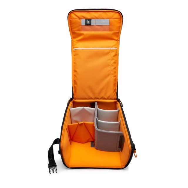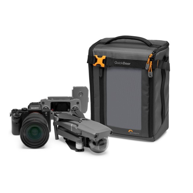 Un bolsillo interior especial ofrece espacio para tarjetas de memoria, mientras que el bolsillo exterior sirve para guardar cables, tapas de objetivos y otros accesorios. El innovador sistema de apertura QuickDoor permite un acceso rápido y seguro a tu equipo sin necesidad de vaciar todo el organizador. El GearUp Creator Box XL II se puede utilizar de forma independiente como funda portátil o colocarlo dentro de una bolsa más grande, convirtiendo así cualquier bolsa en una solución totalmente funcional para transportar la cámara.