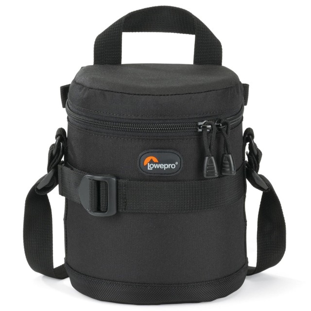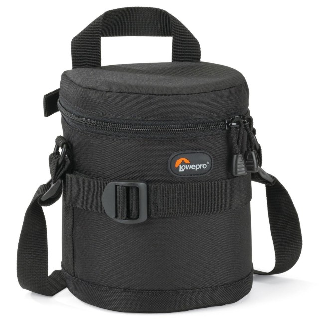 La funda negra para objetivosLowepro de 11 x 14 cm recibe su nombre por las dimensiones de los objetivos que caben en ella. Por ejemplo, esta funda tiene capacidad para un objetivo de hasta 11 cm de diámetro y 14 cm de altura.