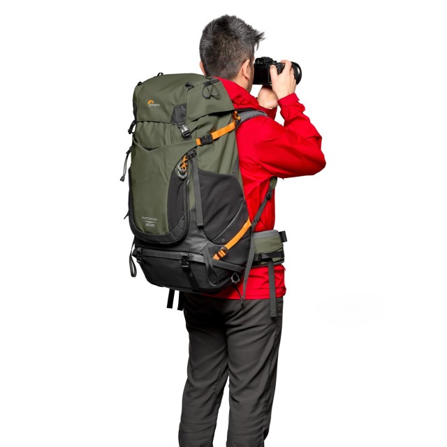 La mochila Lowepro PhotoSport PRO 55L AW IV (M-L), diseñada para fotógrafos profesionales que salen al campo, combina una estructura ligera con materiales resistentes y ecológicos. Está fabricada en un 86 % con materiales reciclados, incluyendo nailon Oxford 420D y Diamond Ripstop, por lo que no solo es sostenible, sino también resistente a las inclemencias del tiempo. Cuenta con la funda All Weather AW Cover™, que protege el equipo de la lluvia, la nieve y el polvo. El forro integrado y extraíble GearUp PRO XL permite transportar tu cámara réflex o sin espejo con un objetivo de 70–200 mm f/2,8 montado y 1–2 objetivos adicionales, mientras que el sistema especial de correas para accesorios permite configuraciones de transporte flexibles. Los turistas y los fotógrafos de exteriores apreciarán el sistema de correas ActivLift™ para una distribución equilibrada del peso, el ajuste de la longitud del torso y las correas para los hombros medianas/grandes, junto con un bolsillo especial de 3 litros para bebidas, que garantiza un refresco durante el camino. Gracias al acceso frontal y trasero al compartimento para la cámara, al espacio de almacenamiento para el equipo necesario para varios días, como sacos de dormir, tiendas de campaña y material de acampada, y al espacio para un trípode grande, esta mochila garantiza tanto la protección como la accesibilidad durante las expediciones fotográficas más largas en la naturaleza.