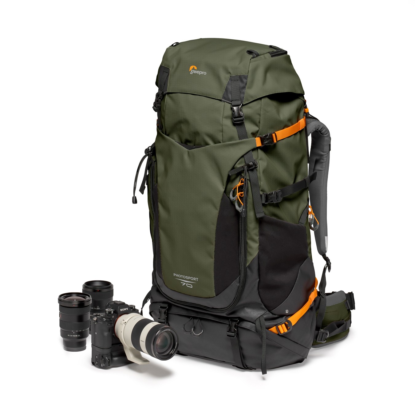 La mochila Lowepro PhotoSport PRO 70L AW IV (S-M) está diseñada para fotógrafos profesionales que necesitan una mochila resistente y ligera para largas expediciones fotográficas sobre el terreno. Está diseñada para albergar una cámara réflex o sin espejo profesional con un objetivo de 70–200 mm f/2,8 montado, además de 1–2 objetivos adicionales y un trípode grande, y garantiza que tu equipo fotográfico esencial esté seguro y sea fácilmente accesible.