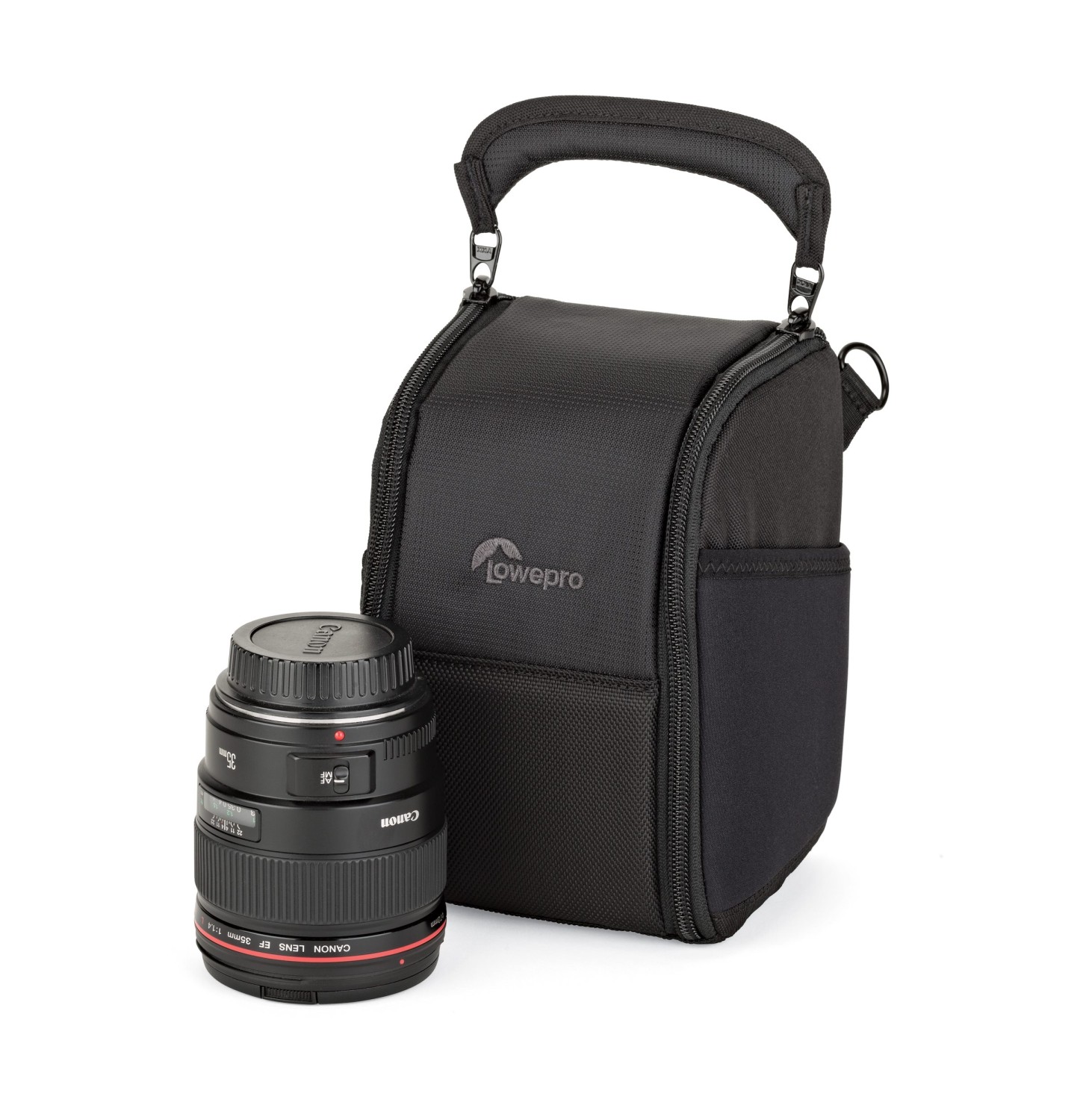 La Lowepro ProTactic LensExchange 100 AW es una funda modular para objetivos que permite cambiar los objetivos de forma rápida y segura mientras se viaja. Gracias a su diseño de dos compartimentos, puede albergar temporalmente dos objetivos durante el cambio, lo que la convierte en la opción ideal para fotógrafos profesionales que trabajan en entornos dinámicos. La asa principal, con un cómodo agarre, permite un manejo fluido con una sola mano, mientras que el bolsillo lateral de neopreno ofrece un práctico espacio de almacenamiento para las tapas de los objetivos o las tapas del cuerpo de la cámara.