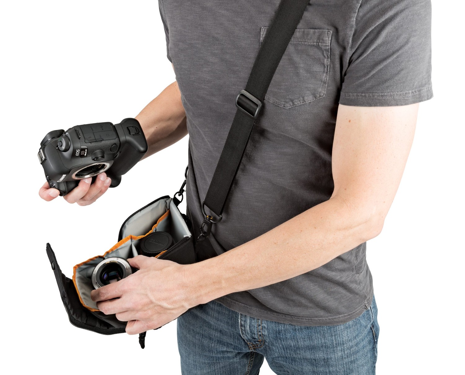 La Lowepro ProTactic LensExchange 100 AW es una funda especial para objetivos que permite a los fotógrafos cambiar rápidamente de objetivo con una sola mano. Está diseñada para objetivos zoom estándar y ultra gran angulares, tiene capacidad para dos objetivos temporalmente durante el cambio, se fija mediante el sistema SlipLock™ a mochilas o cinturones de la serie ProTactic y está equipada con una correa para el hombro desmontable y una funda All Weather Cover™ para un uso versátil en cualquier condición meteorológica.