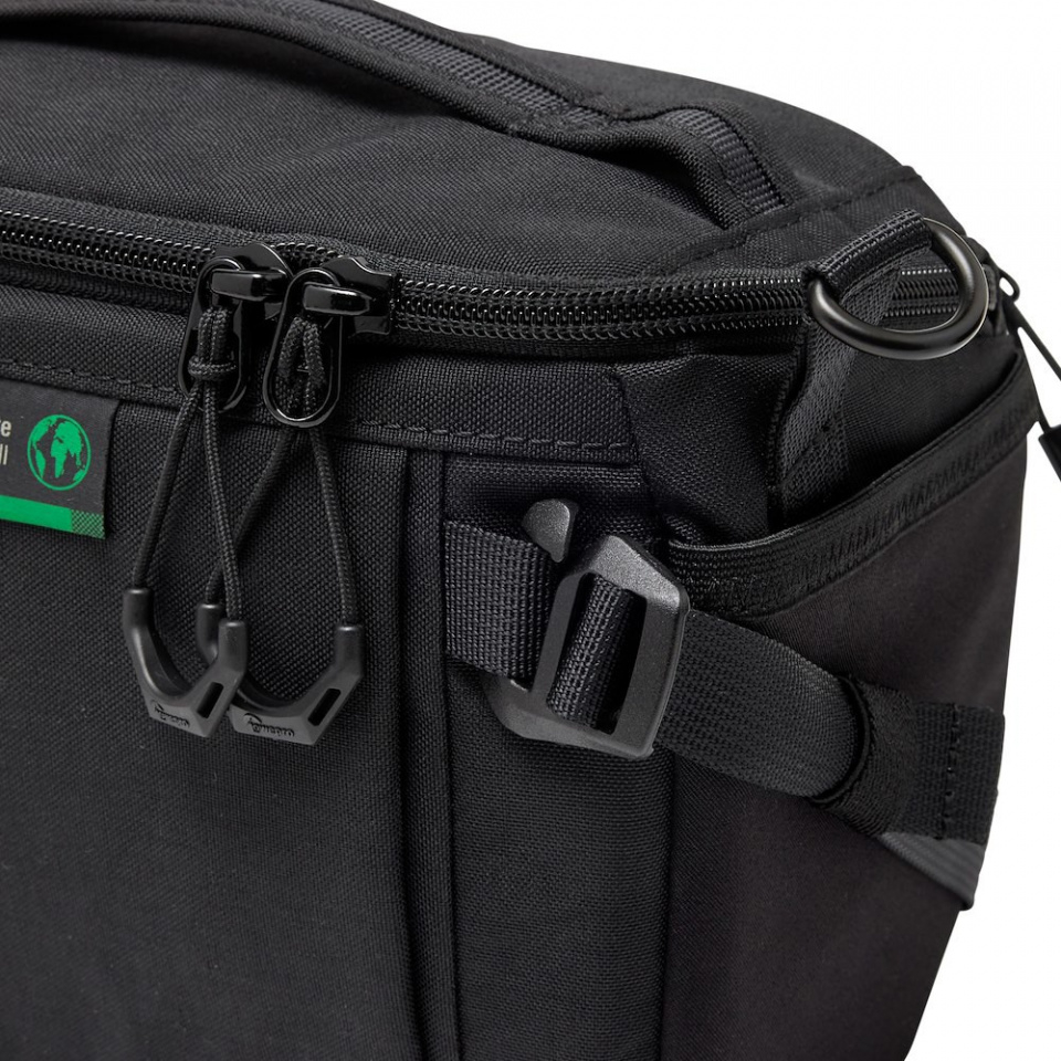Lowepro ProTactic Lite SLX 110 AW III Bolsa para cámara resistente y compacta, convertible en bandolera o bolso de hombro, diseñada para cámaras sin espejo de formato completo con objetivos de hasta 24-70 mm F2.8. -_Compartimentos moldeados MaxFit™ optimizados para ofrecer protección y un peso reducido -_Compatible con los cinturones ProTactic III para llevarla colgada de la cintura -_Cabe en la abertura lateral de la mochila ProTactic Lite BP -_Incluye 2 accesorios: correas y All Weather Cover™ (funda impermeable) -_87 % de materiales reciclados* - resistencia probada en laboratorio y sobre el terreno Adáptate a cada momento Presentamos la ProTactic Lite SLX 110 AW III, parte de la colección ProTactic III de Lowepro, diseñada para fotógrafos que necesitan una bandolera o una mochila versátil. Esta bolsa tiene capacidad para una cámara sin espejo de formato completo con un objetivo no telescópico de 24-70 f/2.8 e incluye separadores para objetivos más pequeños y otros accesorios. Se puede utilizar como bolsa independiente o como inserto para las mochilas ProTactic Lite. Enfoque innovador y organización La ProTactic Lite SLX 110 AW III cuenta con el sistema de separadores MaxFit™ totalmente moldeado, que garantiza un aprovechamiento óptimo del espacio. La bolsa incluye bolsillos elásticos a ambos lados para tapas de objetivos o la funda All Weather Cover™ (AWC) incluida, un bolsillo delantero blando para objetos pequeños con una presilla para llaves y un organizador, y un bolsillo con cremallera en la puerta. En la parte trasera hay un bolsillo plano acolchado para una mayor organización. Comodidad y resistencia La ProTactic Lite SLX 110 AW III está equipada con una correa para el hombro ajustable que permite llevarla cómodamente como bolso de hombro o cruzada como bandolera. La correa incluye una hebilla con cierre de seguridad para evitar que se suelte accidentalmente y presillas elásticas para sujetar el exceso de longitud de la correa. La mochila también se puede llevar alrededor de la cintura añadiendo el cinturón ProTactic Utility Belt III o el cinturón de la ProTactic BP 350 III o 450 III. Sostenibilidad y larga vida útil Comprometida con reducir el impacto medioambiental, la ProTactic Lite SLX 110 AW III utiliza hasta un 87 % de materiales reciclados* en peso. Estos materiales se someten a exhaustivas pruebas de laboratorio y de campo para cumplir con nuestros requisitos de rendimiento y resistencia, garantizando así una larga vida útil en la que puedes confiar. Esta mochila está diseñada para durar, con piezas reemplazables, como las correas para accesorios, lo que garantiza una mayor vida útil para tus próximas aventuras. * Medido según la norma GRI 301-2, como porcentaje de hilo reciclado en comparación con el peso total del hilo.