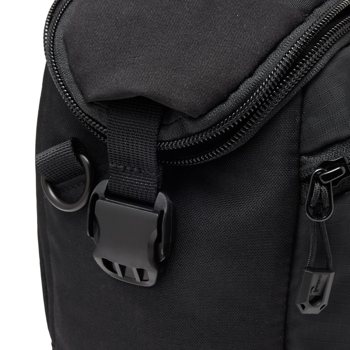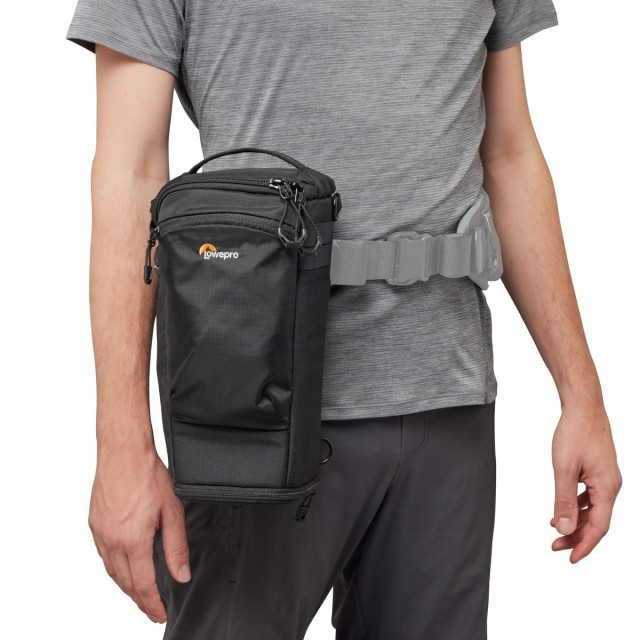 Esta bolsa delgada de carga superior ofrece opciones de transporte versátiles. Utilice las correas principales y estabilizadoras para llevarla al hombro de forma estándar, cámbiela a la posición de pecho para un acceso rápido, o fíjela al cinturón ProTactic Utility Belt III, a cinturones ProTactic compatibles o a un cinturón de pantalón estándar de 38 mm. La bolsa es compatible con el sistema SlipLock™ para fundas de objetivos adicionales, lo que permite a los fotógrafos ampliar su sistema incluso cuando están de viaje.