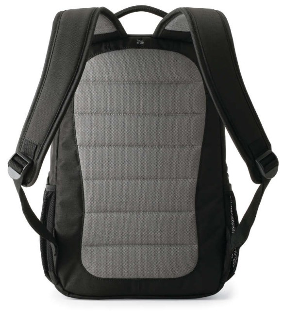 Dos bolsillos laterales altos y elásticos pueden albergar objetos que necesitas tener a mano rápidamente, como una botella de agua grande o un trípode compacto.