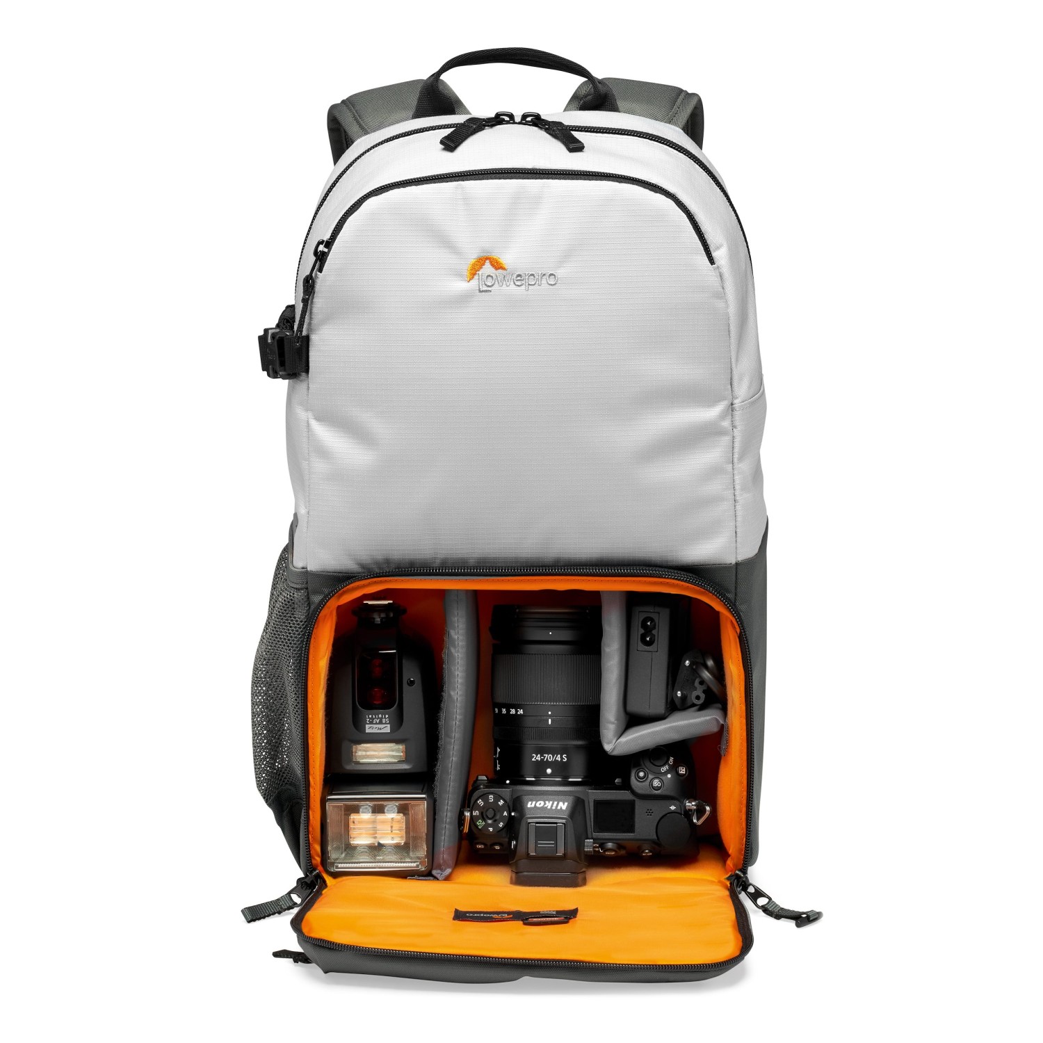 La comodidad es fundamental gracias al panel trasero de malla transpirable que evacua el sudor y a la correa pectoral ajustable, que garantizan la comodidad durante todo el día. Las correas de compresión laterales dobles y los bolsillos de malla ofrecen un almacenamiento seguro para un trípode compacto y una botella de agua. La cremallera de seguridad con hebilla añade una protección adicional al compartimento para la cámara y mantiene tu equipo a salvo durante tus aventuras.