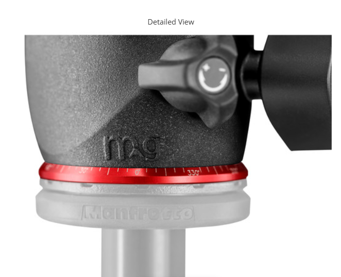 • Triple control independiente: bloqueo de la rótula, bloqueo de giro de 360°, botón de ajuste de fricción/tensión