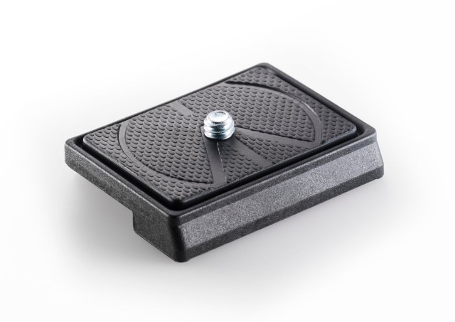 Placa de fijación rápida ligera Manfrotto 200LT-PL: placa ultraligera de tecnopolímero y fibra de vidrio con un peso de 31 g, compatible con RC2/Q2, capacidad de carga de 4 kg, superficie de goma de alta adherencia y cierre de seguridad con forma de logotipo para una fijación rápida y segura de la cámara.