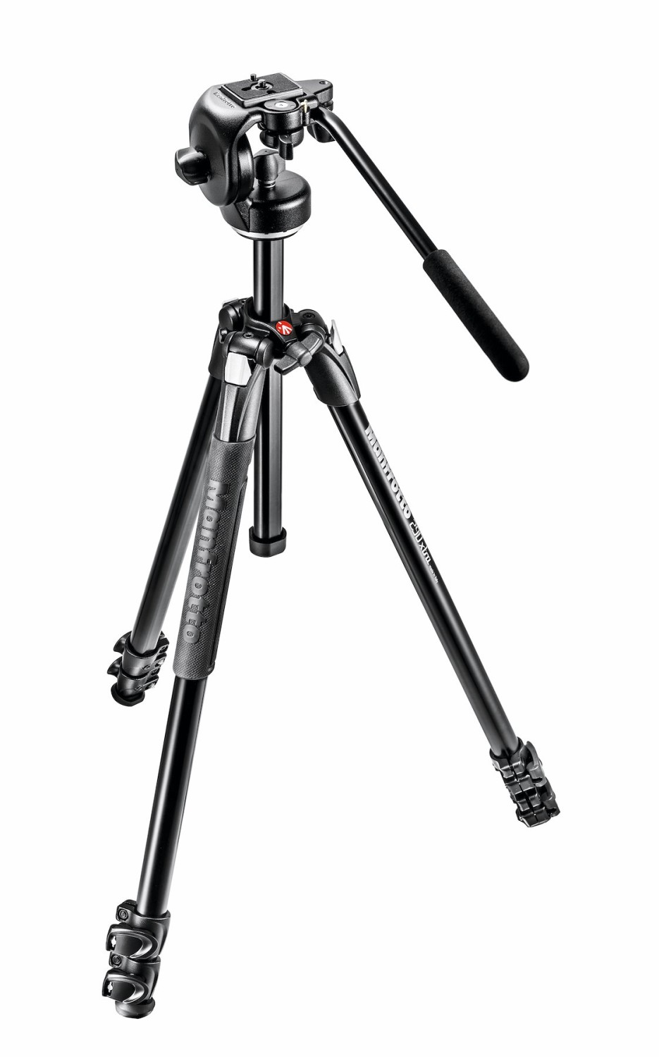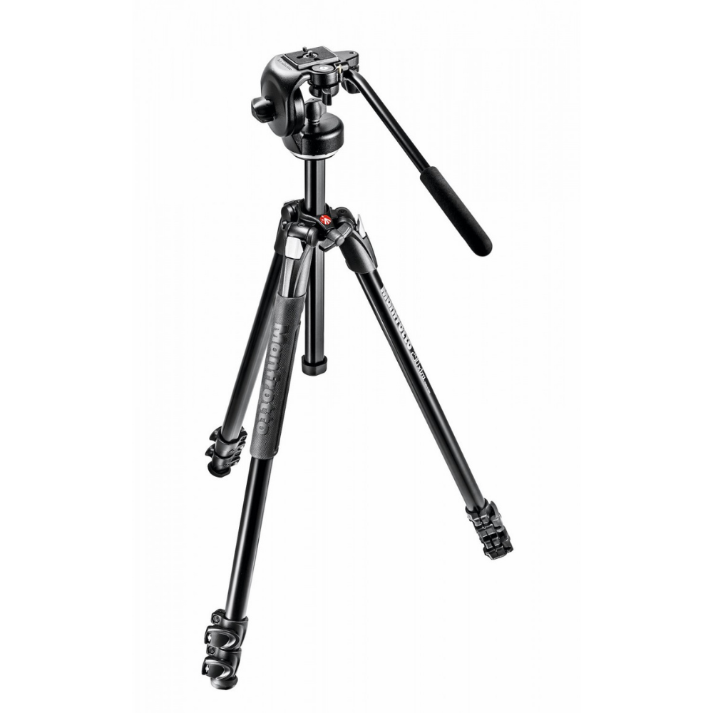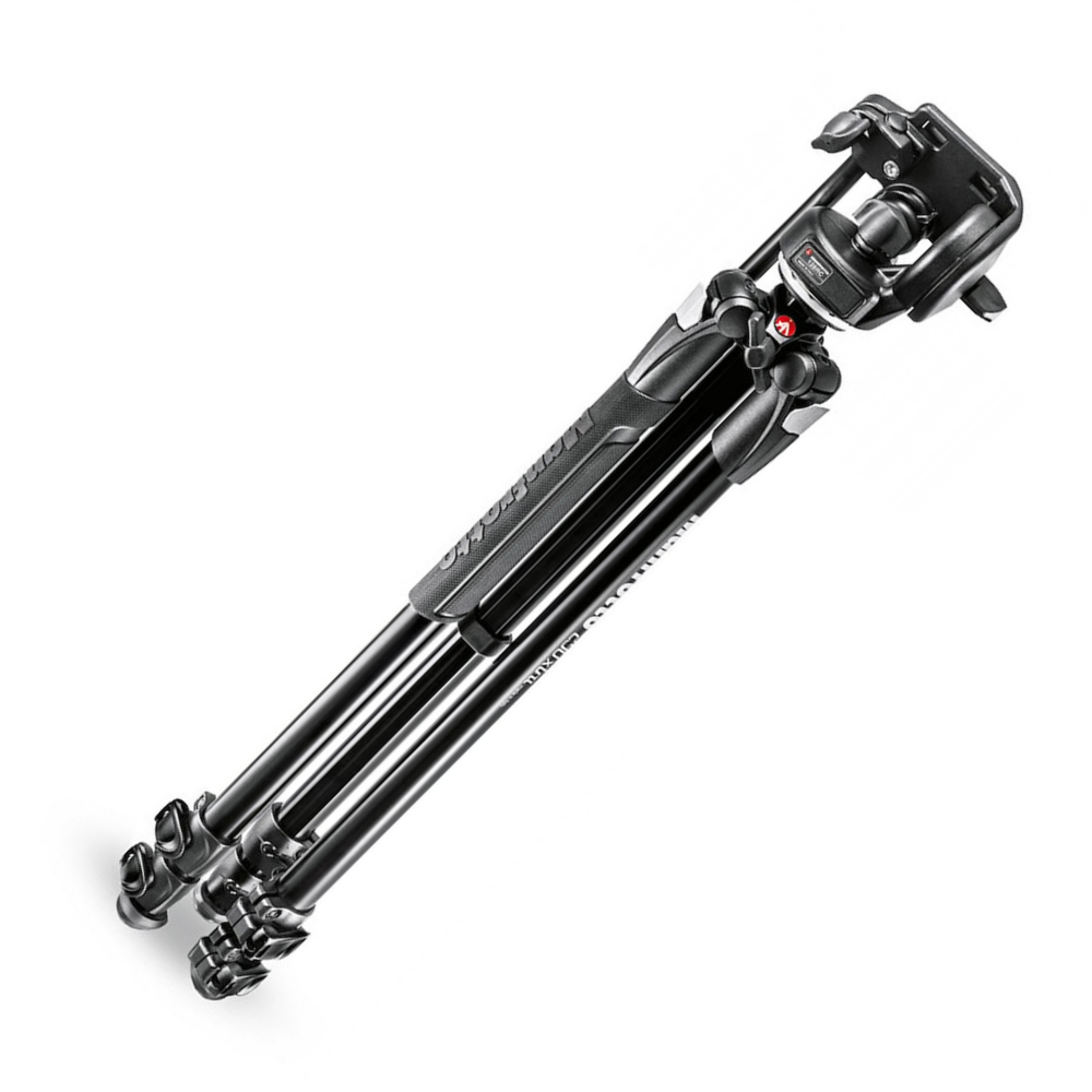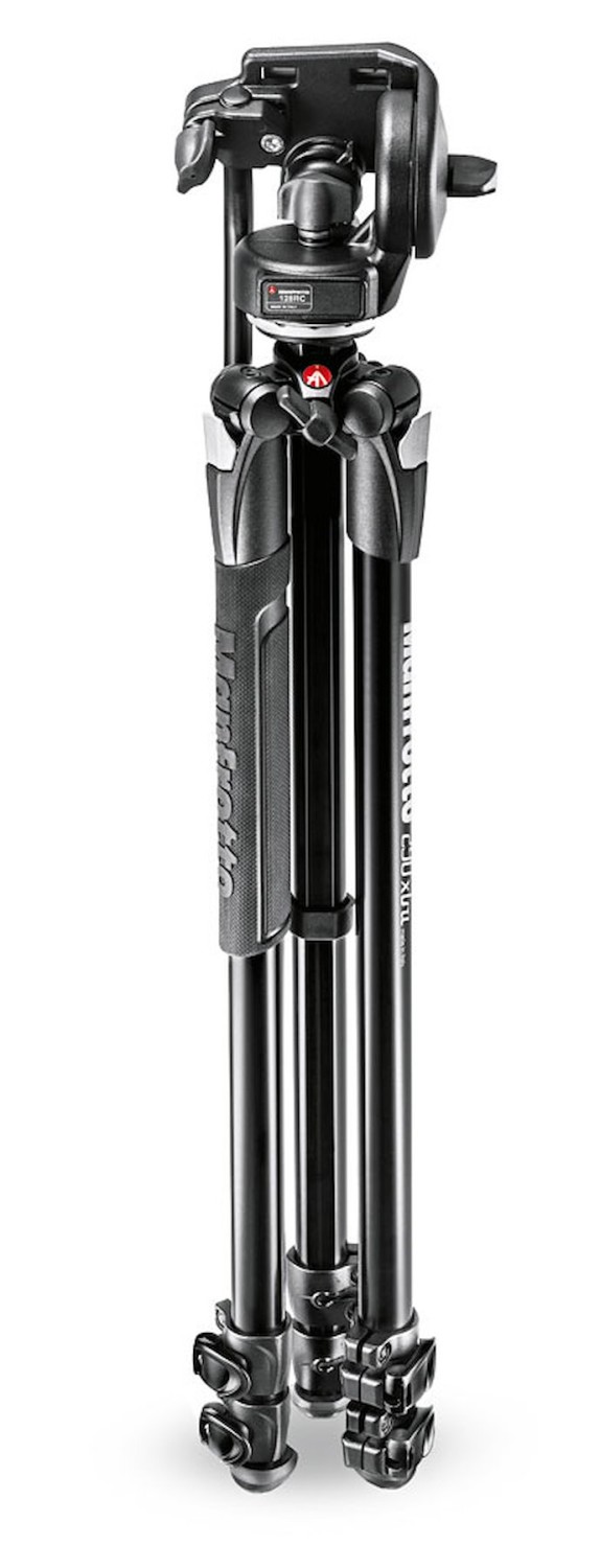 El cabezal de trípode panorámico/inclinable de tres vías con engranajes Manfrotto